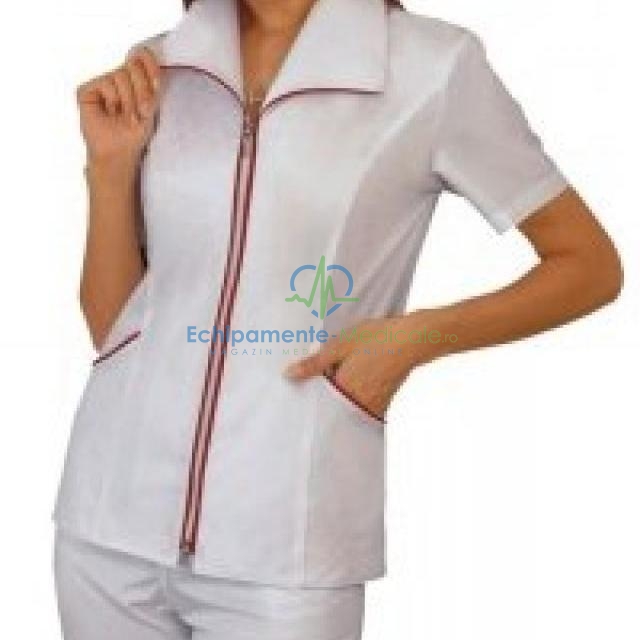 - Halat medical de dama alb, scurt, cambrat, inchidere cu fermoar, maneca scurta / lunga, doua buzunare laterale.