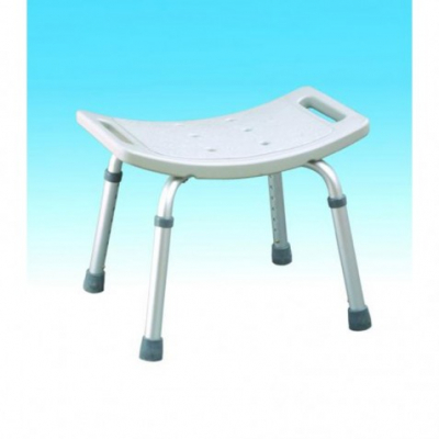 Carucior de baie realizat din aluminiu inoxidabil cu sezut din PVC, inaltimea scaunului reglabila, picioare prevazute cu pufere antialunecare.